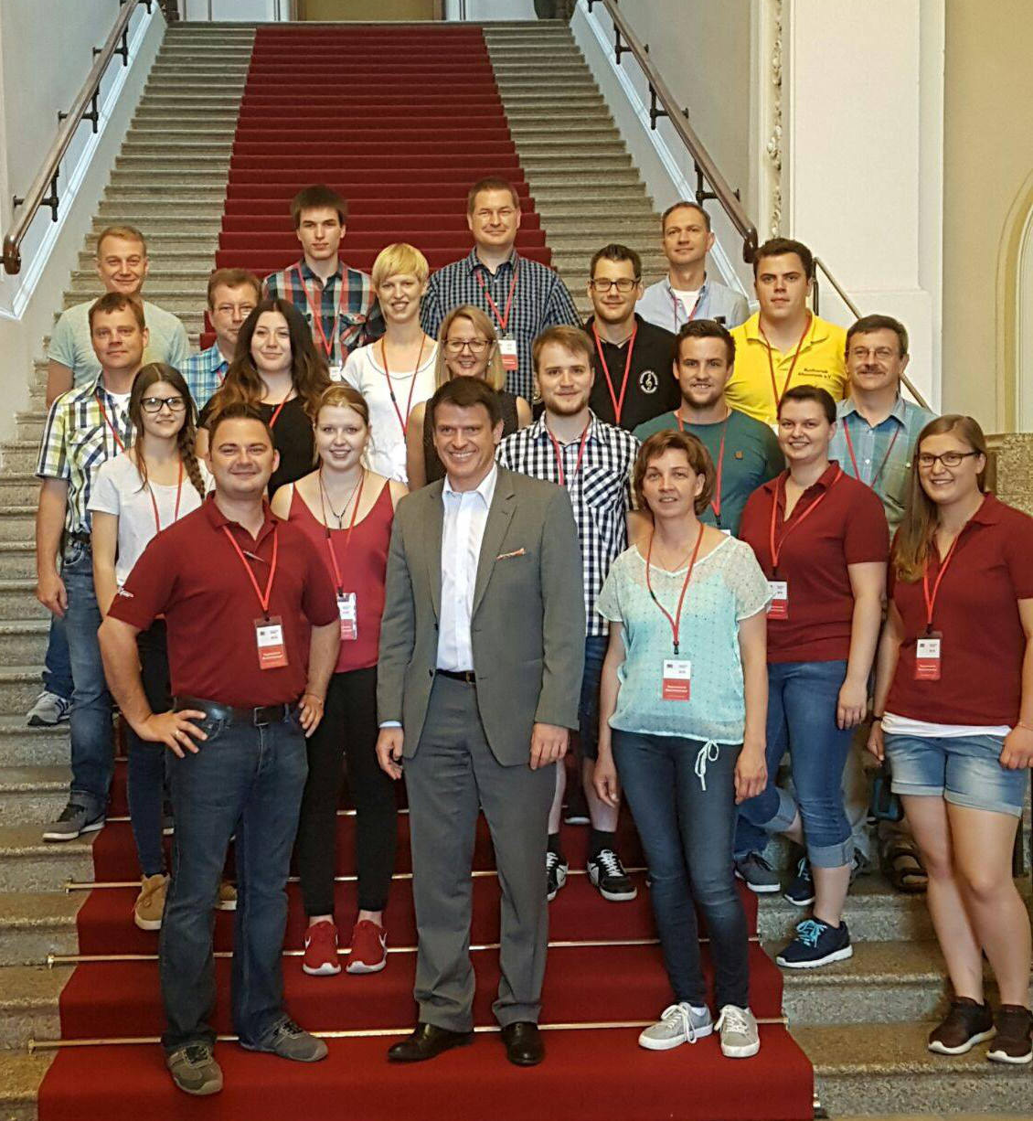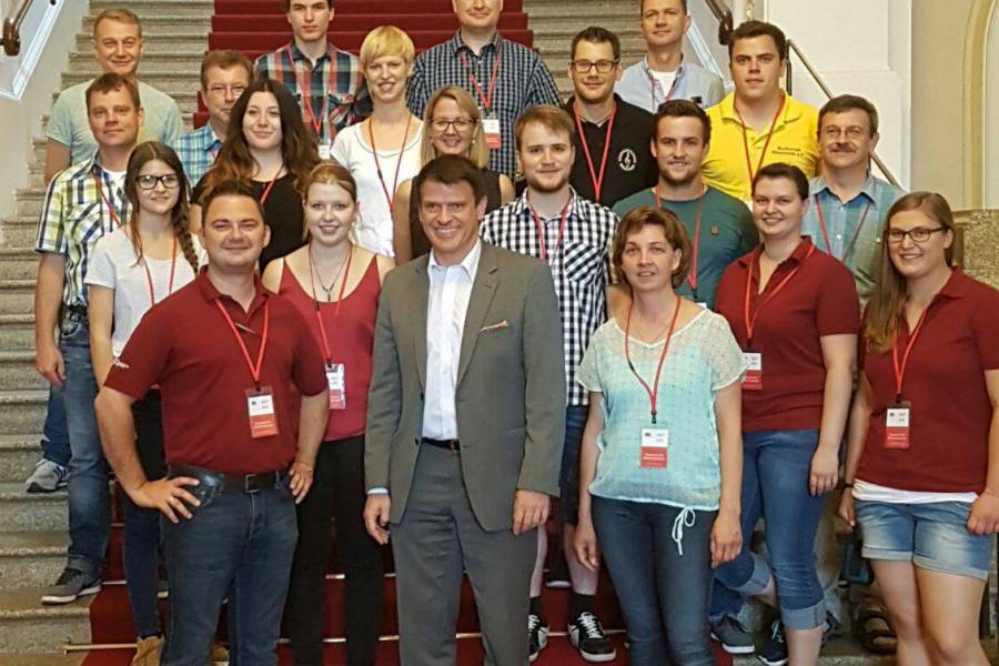 Als Dank und Anerkennung für die ehrenamtlich geleistete Jugendarbeit organisierte der Kreisverband Haßberge der Nordbayerischen Bläserjugend eine Fahrt in die Landeshauptstadt München. Nachdem der Vormittag zur freien Verfügung in der Innenstadt stand, führte die Musiker der Weg ins Maximilianeum. Da die Jugend zu einem seiner Aufgabengebiete im Landtag gehört, freute sich Steffen Vogel MdL besonders über den Besuch aus der Heimat und würdigte mit seiner Präsenz und Fürsorge die ehrenamtlichen Musiker in der Jugendarbeit. Bei einer Führung durch den Landtag erhielten sie einen Blick hinter die Kulissen des Landtags und Informatives zur Geschichte des Maximilianeums und der gleichnamigen Stiftung. Am Schluss der Führung stand eine Diskussionsrunde mit Steffen Vogel (CSU), Kathi Petersen (SPD) und Katharina Schulze (Bündnis 90 die Grünen) auf dem Programm, bei der u.a. über die Flüchtlingspolitik und Rente heftig mit den Teilnehmenden diskutiert wurde. So konnten die Musiker einmal aktiv miterleben, wie die Politiker arbeiten. Den Abschluss der Tagesfahrt bildete ein Besuch in Hirschaid, einem Biergarten, bei dem sich alle Teilnehmer noch einmal stärken konnten, bevor es dann schließlich wieder nach Hause ging.